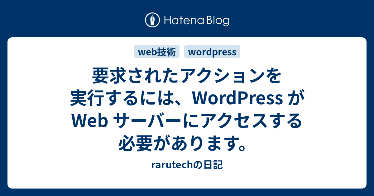要求されたアクションを実行するには Wordpress が Web サーバーにアクセスする必要があります Rarutechの日記
