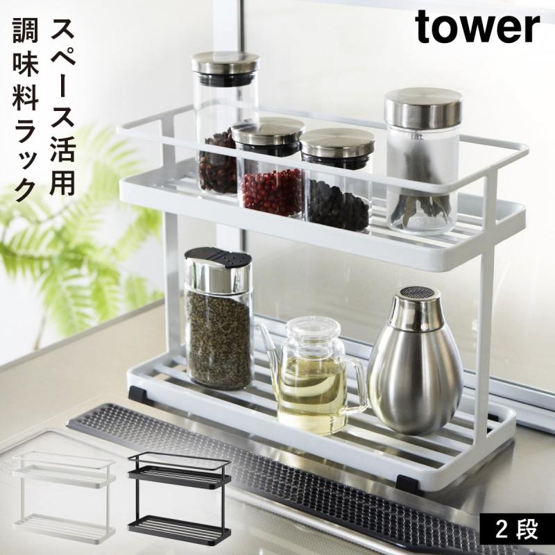 スパイスラック 調味料ラック 2段 おしゃれ キッチン収納棚 収納ラック キッチンスタンド タワー キッチン 白い 黒 Tower 山崎実業 073067775 アイデア雑貨の専門店 雑貨屋 通販 Yahoo ショッピング