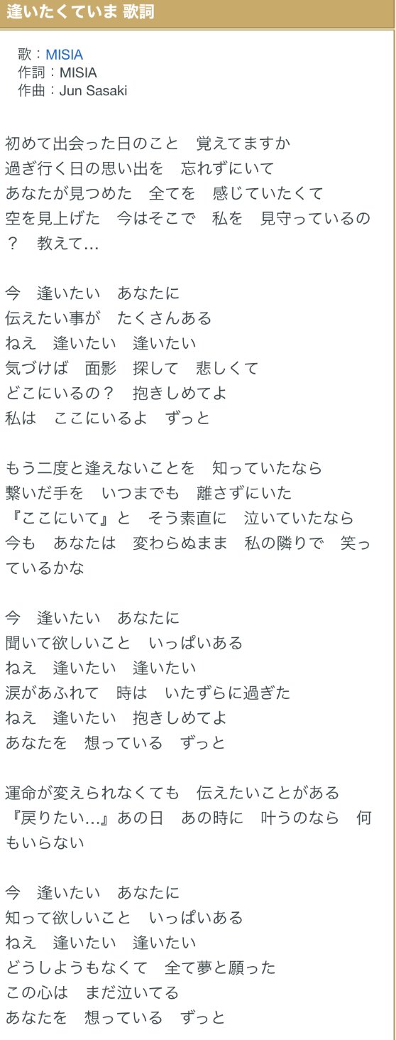 Swtokyodome On Twitter Misiaの逢いたくていまの歌詞 聴き返すとすてきだね