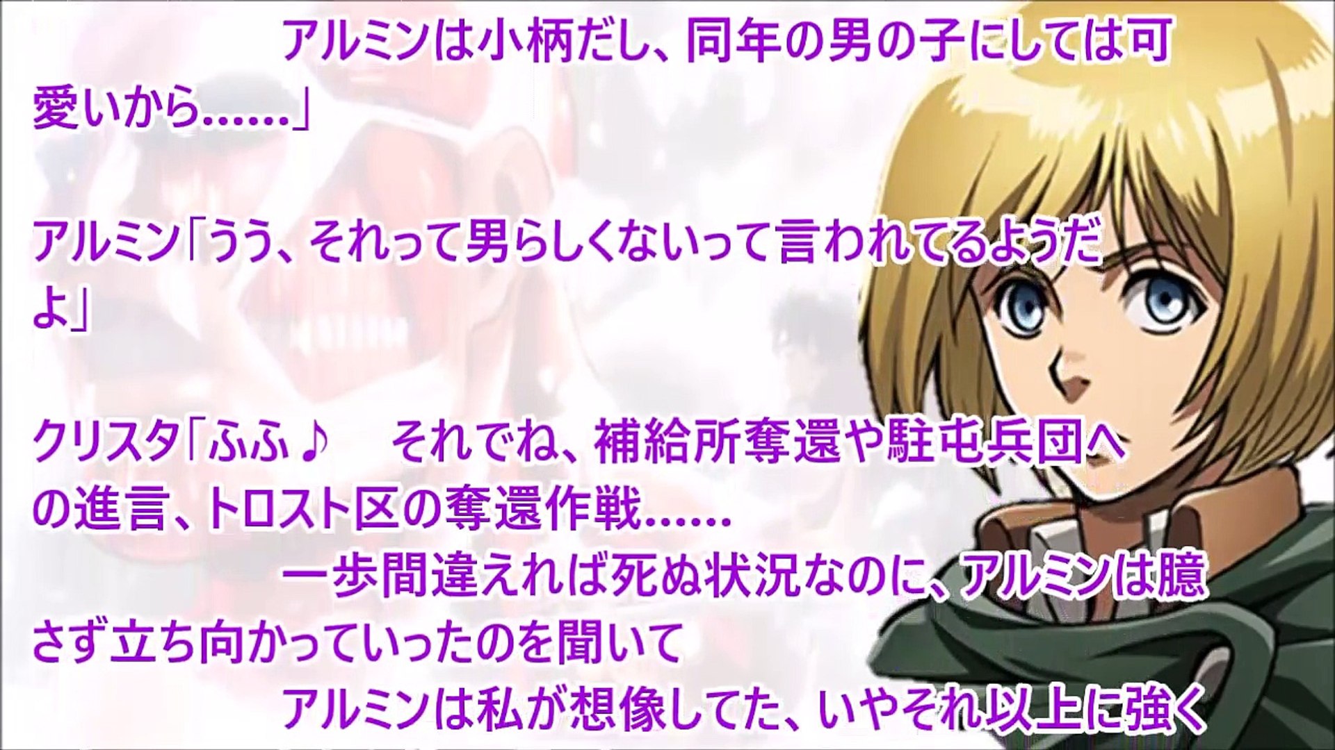 進撃の巨人ss アルミンの薬5話 クリスタ 私はエレンのお嫁さんになるのにね Video Dailymotion