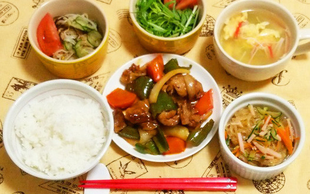 酢豚に合うおかずと副菜のスープを取り入れた献立 かめねず