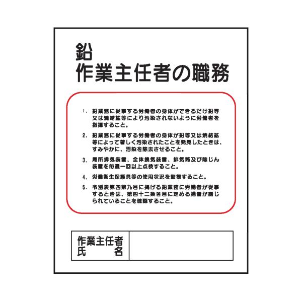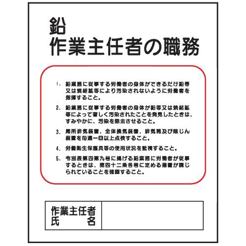 鉛 作業主任者職務表示板 808 16 安全用品 工事看板通販のサインモール